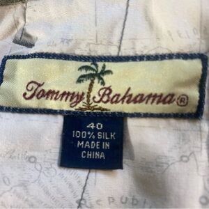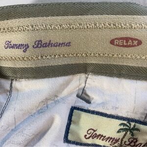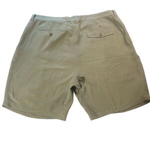 Experience comfort and style with these Tommy Bahama green flat front shorts, perfect for casual outings. Crafted from lightweight fabric, they offer a smooth texture and a versatile fit. Ideal for those who appreciate a blend of elegance and ease in their wardrobe. 100 Silk Inseam 8” rise 13” size 40