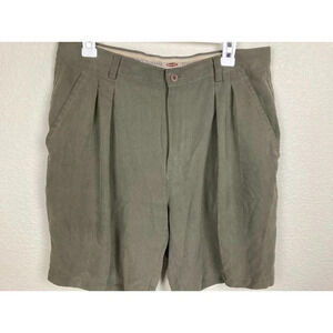 Great Pre-Owned Condition, no flaws Tommy Bahama olive green silk pleated shorts with pockets 100% Silk Size 34