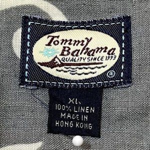 This Tommy Bahama Men's Hawaiian Shirt in XL size boasts a rich green and cream floral design. Made from fine linen, it's perfect for casual wear or beach outings.
