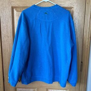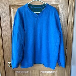 This top is made by Tommy Bahama. It’s a reversible long sleeve sweatshirt. One side is greenish gray stitch blue stitching accents and the other is all blue. Size tag has been removed, but fits like an XL. Please see measurements. Very nice pre owned condition. Smoke and pet free home.