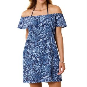 Tommy Bahama Harbour Eyelet Print Off The Shoulder Dress Cover Up