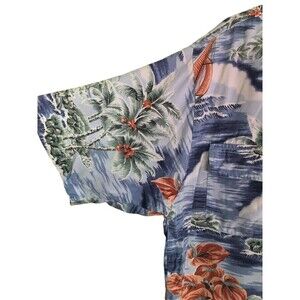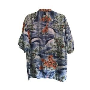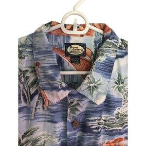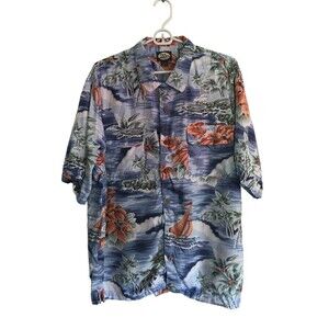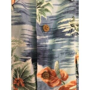 Tommy Bahama Hawaiian Button Up Shirt Mens Size Large Blue Tropical Short Sleeve