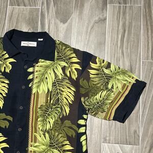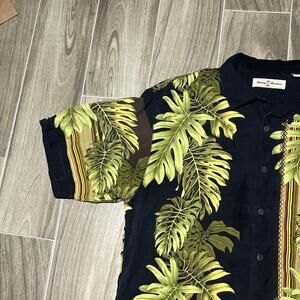 Tommy Bahama Hawaiian Button Up Silk Shirt Mens Medium Fronds Floral Camp Black