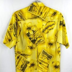 Tommy Bahama Men's Shirt Hawaiian Yellow Palm Vintage Fit Short Sleeve Sz M