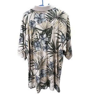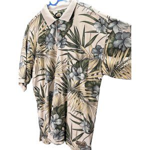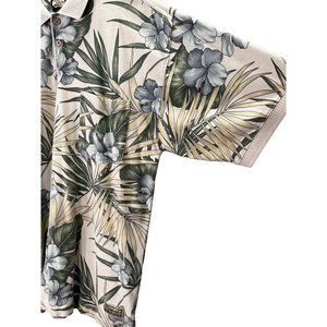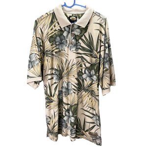 Tommy Bahama Hawaiian Polo Shirt size L Men Short Sleeve Floral Palm Beige