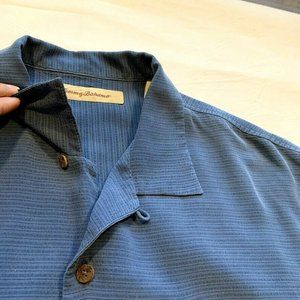 Tommy Bahama Hawaiian Shirt Men Medium M Button Up Silk Stripe Beach Summer Pool
