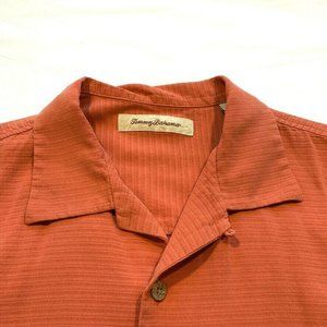 Tommy Bahama Hawaiian Shirt Men Medium M Button Up Silk Stripe Beach Summer Pool