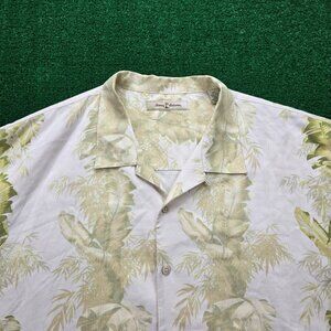 Tommy Bahama Hawaiian Shirt Mens 2XL/3XL Green 100% Silk Camp Summer Beach