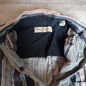 Tommy Bahama Hawaiian Shirt Mens L Button Up Aloha Silk Short Sleeve Flaw