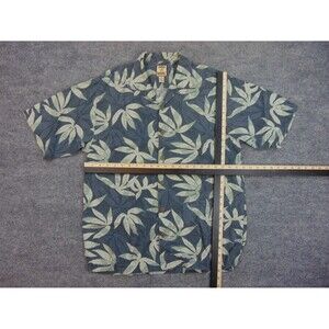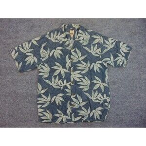 Tommy Bahama Hawaiian Shirt Mens Med Gray Green Floral Palms Aloha