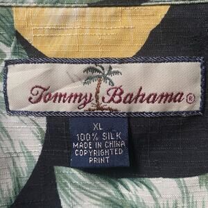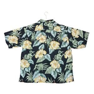 Tommy Bahama Hawaiian Shirt Silk Hibiscus Flowers Fronds XL Black Green Aloha