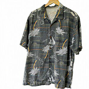 Tommy Bahama Hawaiian Silk Shirt Sailboats Palm Trees Print Men's XL