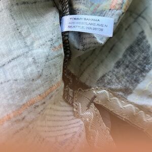 Tommy Bahama Silk Button Down Shirt Sailboats Palm Trees Compass Rose Crab Islands Yellow Orange and Blue designs Print Men's XL