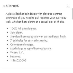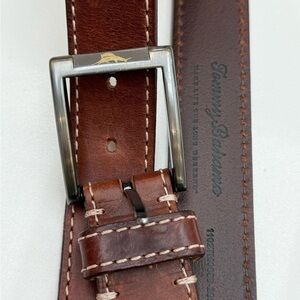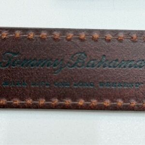 Tommy Bahama brown leather belt. 50 inches long. Excellent condition. First eight pictures are of the item being sold and the rest are from the website.