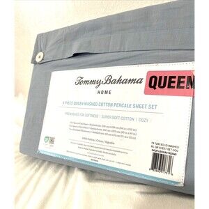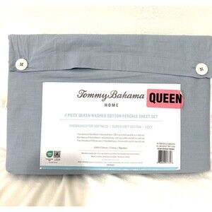Tommy Bahama Home Washed Cotton Percale Queen Sheet Set 4 Pieces Blue Sky New Island Crafted 100 standard OEKO TEX please see pictures for more details
