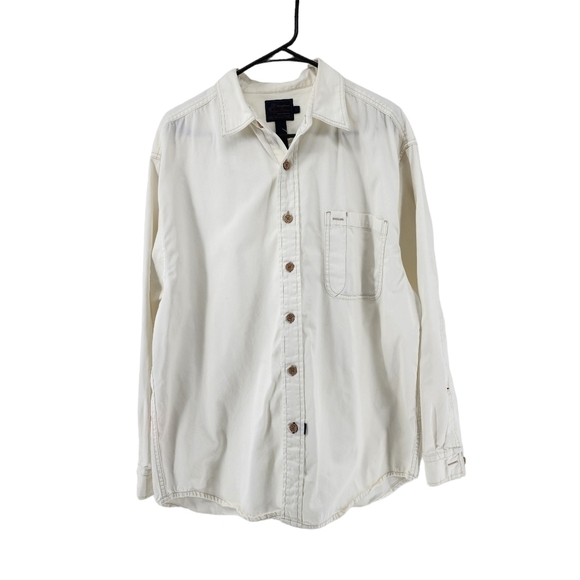 Men's Button-Up Denim Shirt from Tommy Bahama Indigo Palms Denim Company in Off White.