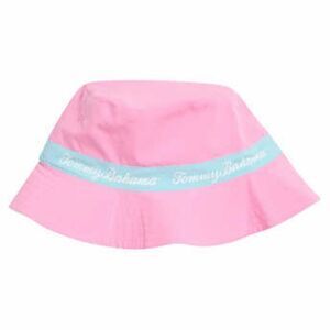 Matching pink bucket hat with Tommy Bahama text wrapped around hat