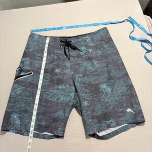 Tommy Bahama Island Active Board Shorts Size 35 Gray Blue Palm Marlin Surf Swim