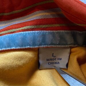 Tommy Bahama Island Estate Long Sleeve Button Down Orange Striped Shirt S-Large. Excellent used condition. Point collar. Left chest pocket. 100% cotton. Orange with blue, green and yellow stripes. Measures chest 46", length 31", sleeve 26".
