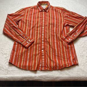 Tommy Bahama Island Estate Long Sleeve Button Down Orange Striped Shirt S-Large