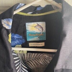 Tommy Bahama Island Modern Fit 100 % Silk Button Up Shirt Mens LG