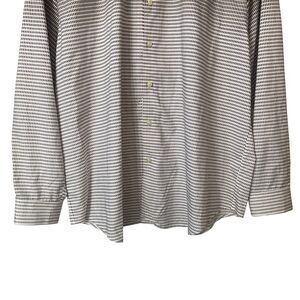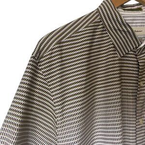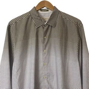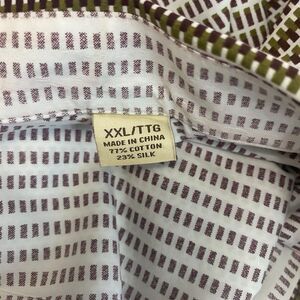 Tommy Bahama Island Modern Fit Mens Size XXL Cotton Silk Button Up Shirt long Sleeve Brown White