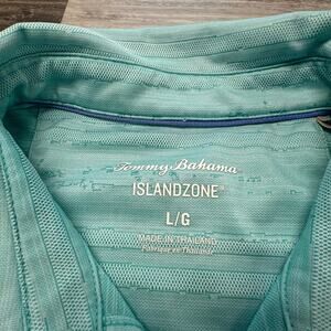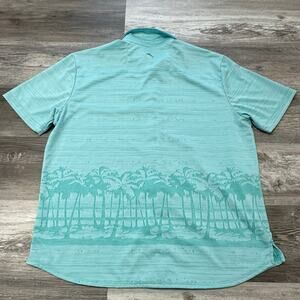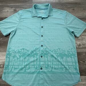 Tommy Bahama Island Zone Blue Mens L Palm Trees Beachy Button Up Hawaiian Shirt