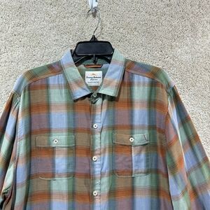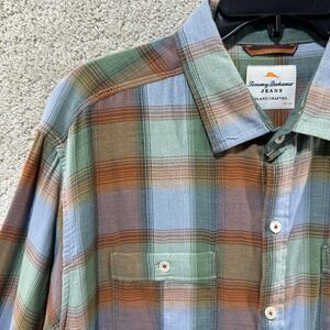 Tommy Bahama Jeans Island Crafted Shirt Men's Large Green Plaid Long Sleeve