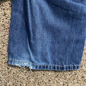 Condition: Fair used condition with visible wear. There is noticeable fraying and distressing on both leg openings, especially at the rear hems (see photos). General fading and light signs of wear throughout, but no holes or stains.