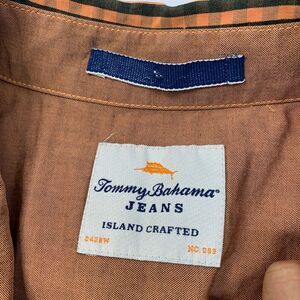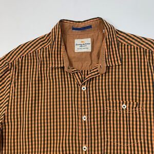 TOMMY BAHAMA JEANS SHIRT MENS L LARGE AMBER ORANGE CHECKER LYOCELL COTTON BLEND