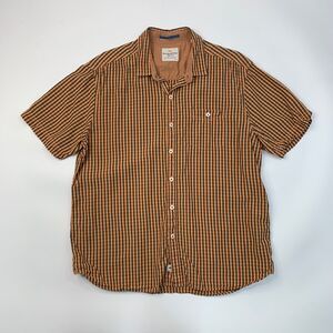 Tommy Bahama Jeans Shirt Mens L Large Amber Orange Checker Lyocell Cotton Blend