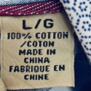 This Tommy Bahama Jeans shirt is a perfect addition to any man's wardrobe. The collared neckline and short sleeves make it suitable for both travel and casual occasions. The blue shirt features a geometric pattern with a flower theme, and is made of 100% cotton fabric which is easy to care for and machine washable. It has a regular fit with a point collar style, and comes with a button-up closure and pockets. The shirt is suitable for all seasons, and is ideal for summer, fall, and spring. It is a part of the Tommy Jeans product line, and is perfect for men who want a comfortable and stylish shirt without any personalization.