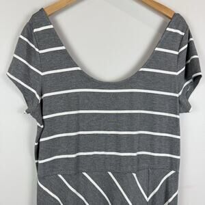Tommy Bahama Jersey Maxi Dress Large Gray Stripe Side Slit Knit Casual Long