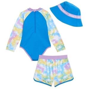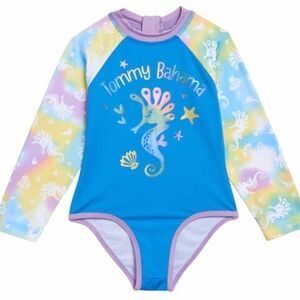 Tommy Bahama Kids' 3-piece Girls Swim Set with bucket hat , Seahorse design New!