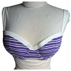 Tommy Bahama Knit Crochet Triangle Bikini Top in Purple/White Size 34B