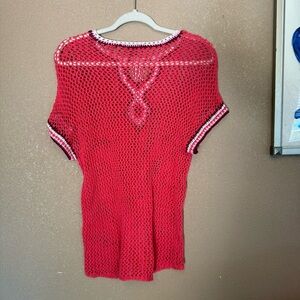 Tommy Bahama Knitted Crotchet 70s Retro Short Sleeve Top Swim Coverup Beachy F