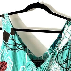 Tommy Bahama L soft double V-neck aqua multi modern floral top
