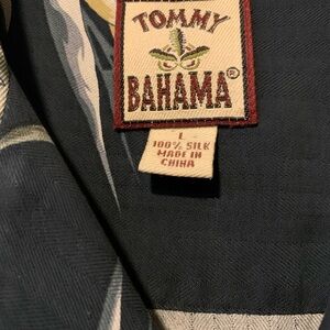 Tommy Bahama LG Men's Floral Navy Shirt 100% Silk Button Up Loose, Relaxed Fit