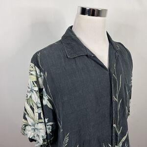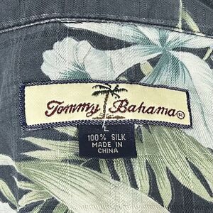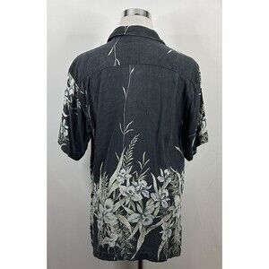 Tommy Bahama Large 100% Silk Hawaiian Aloha Shirt Floral Blue Green on Black