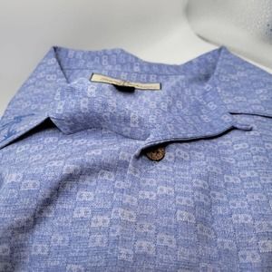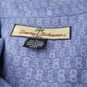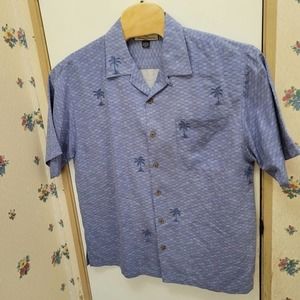 For sale is this Tommy Bahama Large Blue Hawaiian Silk Short-Sleeve Shirt with Embellishments! Shirt is in excellent condition!