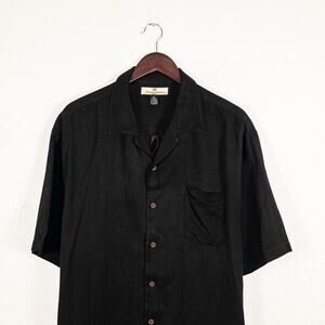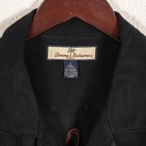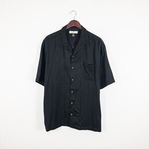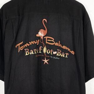 Tommy Bahama Large Silk Barefoot Bar Embroidered Hawaiian Shirt in Black