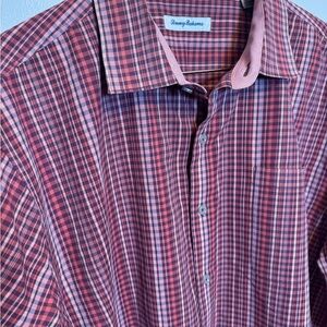 Tommy Bahama Lazlo Lux Stripe Shirt Red Plaid Men's XLTG