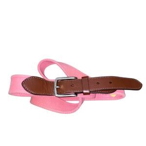 Tommy Bahama Leather Canvas Preppy Barbie Ken Pink and Brown Belt XL 42-44