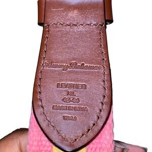 This Tommy Bahama belt is designed for the fashion-conscious preppy Barbie and Ken out there. Made with a charming combination of pink and brown leather canvas, it's perfect for those who love to make a statement. The belt is designed for both unisex adults and is an extra-large size. It's a great addition to any wardrobe, providing a pop of color and personality to any outfit.