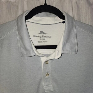Experience comfort and style with the Tommy Bahama light gray polo shirt in size XL. This classic-fit polo is crafted from premium polyester fabric, making it ideal for various activities such as beach outings, golf, or leisurely walks. The short sleeves and spread collar design add a touch of relaxed elegance, perfect for casual occasions or weekend get-togethers.