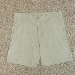 Classic flat front shorts by Tommy Bahama. Beach Coast Linen lightweight and breathable fabric. Men's sz 38 x 9. 58% linen, 40% cotton, 2% spandex.