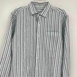 Tommy Bahama Linen Blend Striped Mens Long Sleeve Button flip cuff Shirt Size M