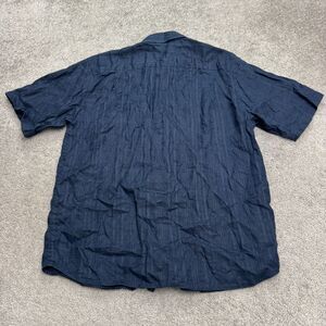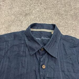 Tommy Bahama Linen Button Down Shirt Mens Medium Blue Short Sleeve Casual