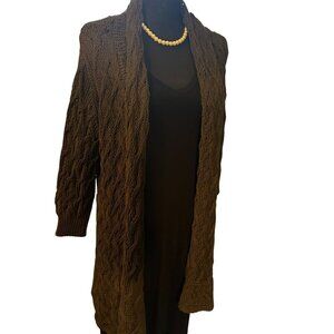 Tommy Bahama Linen Cotton Cardigan Sweater Women Cable Knit Cottage Beachy Open