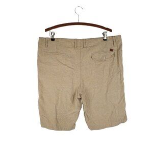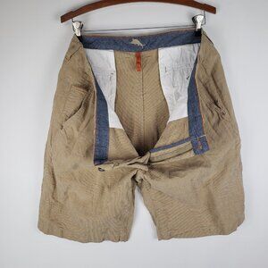 Tommy Bahama Linen Cotton Shorts Striped Khaki Tan Flat Front Mens Size 38
